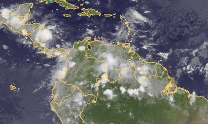 Auf dem Satellitenbild sind kräftige Schauer und Gewitter über Mittelamerika und dem Norden Südamerikas erkennbar. Diese entwickeln sich jahreszeitlich bedingt in der innertropischen Konvergenzone.
