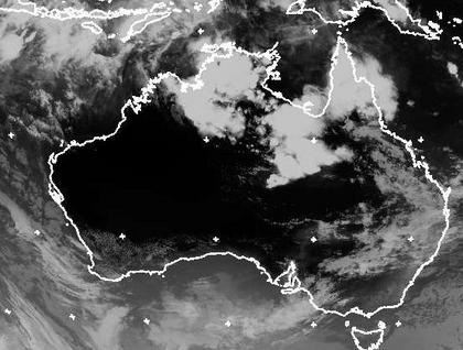 Im Norden von Australien sind auf dem Satellitenbild von Dienstag früh einige Schauer- und Gewitterzellen gut zu erkennen. Hier kommt es gebietsweise zu teils kräftigen Regen. Sonst bleibt es auf dem Kontinent meist freundlich und trocken. (Bildquelle: NERC Satellite Receiving Station, Dundee University, Scotland, http://www.sat.dundee.ac.uk/)