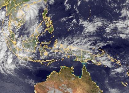 Über Indonesien und Neuguinea haben sich im Bereich der innertropischen Konvergenzzone krfätige Schauer und Gewitter entwickelt.