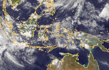 Über Indonesien und Neuguinea haben sich jahreszeitlich bedingt Schauer und Gewitter entwickelt.