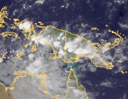 Über Neuguinea haben sich jahreszeitlich bedingt Schauer und Gewitter entwickelt.