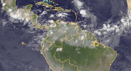 Von Mexiko über den Norden Südamerikas bis weit auf dem mittleren Atlantik sind auf dem Satellitenbild die Zellen kräftiger Schauer und Gewitter erkennbar. Diese entstehen jahreszeitlich bedingt in Zusammenhang mit der innertropischen Konvernzzone.