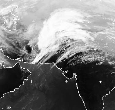 Über Afghanistan liegt ein Tief, das im Süden und in geringeren Höhen Regen bringt, über weiten Teilen des Landes aber Schnee. Sonst ist es in der Region meist trocken, in Indien teils sogar wolkenlos.