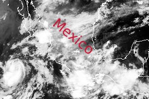 Auf dem Satelittenfoto von heute Morgen 6 Uhr MEZ sind mehrere starke Tiefdruckausläufer auszumachen, die vom östlichen Pazifik auf das Festland von Mexico und Guatemala ziehen. Vielerorts sind enorme Niederschlagsmengen von über 100 Litern Regen pro Quadratmeter zu erwarten.