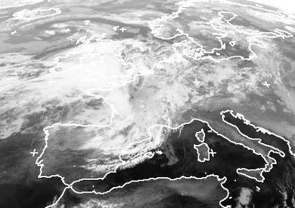 Über Deutschland liegt die Bewölkung abgeschwächter Tiefausläufer von Tief 'Hana', dessen Zentrum man zwischen Island und Schottland findet. Über den Britischen Inseln liegt schon dichtere Bewölkung. Sie gehört zu dem neuen Sturmtief 'Katrin', das am Sonntag in Richtung Ostsee zieht. Dabei bringt es Deutschland einen teils stürmischen Wind. (Bildquelle: NERC Satellite Receiving Station, Dundee University, Scotland, http://www.sat.dundee.ac.uk/)