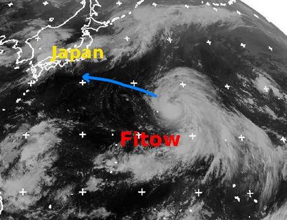Über dem West-Pazifik hat sich der neue Taifun 'Fitow' gebildet. Derzeit liegt seine mittlere Windgeschwindigkeit bei 120 km/h, in Böen werden 150 km/h erreicht. Seine weitere Zugbahn soll Berechnungen zufolge auf Japan zulaufen, wo er etwa am 05.09. eintreffen könnte. Bis dahin wird er sich voraussichtlich noch deutlich verstärken, wobei dann mittlere Windgeschwindigkeiten bis zu 250 km/h, in Böen bis 300 km/h möglich sind. (Bildquelle: NERC Satellite Receiving Station, Dundee University, Scotland, http://www.sat.dundee.ac.uk/)