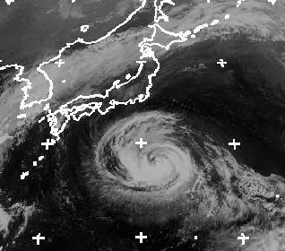 Der Taifun 'Fitow' liegt südlich von Honshu. Zur Zeit beträgt seine mittlere Windgeschwindigkeit 120 km/h, in Böen bis zu 170 km/h. Am Donnerstag erreicht er die dicht besiedelte japanische Küste, dabei sind Böen bis 185 km/h zu erwarten. Auf Honshu kommt es auch zu sehr starken Regenfällen. (Bildquelle: NERC Satellite Receiving Station, Dundee University, Scotland, http://www.sat.dundee.ac.uk/)