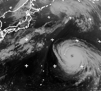 Über dem Pazifik liegt der Taifun 'Ioke' nahe der Marcusinsel. Er erreicht zurzeit eine mittlere Windgeschwindigkeit von 205 km/h und Böen bis 250 km/h. Er zieht weiter nach Nordwesten. Zur Wochenmitte könnte er Japan erreichen. dabei hat er jetzt schon einen langen Weg zurück gelegt. Entstanden ist er vor zwei Wochen südlich von Hawaii. (Bildquelle: NERC Satellite Receiving Station, Dundee University, Scotland, http://www.sat.dundee.ac.uk/)
