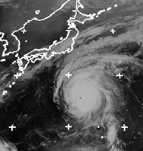 Südlich von Japan liegt der kräftige Taifun 'Yagi' mit mittleren Windgeschwindigkeiten bei 260 km/h und Böen bis 315 km/h. Er zieht weiter nordwärts, wir dann voraussichtlich aber nach Nordwesten abdrehen, bevor er Honshu erreicht. Nur an der Küste weht ein starker Wind. (Bildquelle: NERC Satellite Receiving Station, Dundee University, Scotland, http://www.sat.dundee.ac.uk/)
