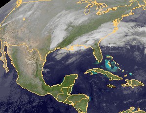 Auf dem Satellitenbild der Vereinigten Staaten sind sowohl im mittleren Osten als auch im Südosten teils dichte Wolken zu erkennen. Hierbei kommt es besonders im Südosten der USA zu teils kräftigen und ergiebigen Niederschlägen, vor allem im Norden Floridas und in Georgia. In der Westhälfte der Staaten herrscht mit Ausnahme des Nordwesten überwiegend freundliches und trockenes Wetter.