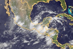 Auf dem heutigen Satellitenfoto von Mittelamerika sind vor allem vom südlichen Mexiko bis ins nördliche Panama vielfach hochreichende Quellwolken zu erkennen, diese sorgen für teils kräftige Schauer oder Gewitter.