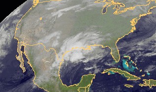 Auf dem heutigen Satellitenfoto von Mexiko und den USA zeigen sich die meisten Landmassen weitgehend wolkenlos oder nur gering bewölkt. Im Norden der Vereinigten Staaten bringen teils dichtere Wolken örtlich etwas Regen. Ein sehr kräftiges Tief im nordwestlichen Golf von Mexiko sorgt aber vor allem an der texanischen Golfküste, teils auch an der nördlichen Golfküste von Mexiko für teils kräftigen und ergiebigen Regen.