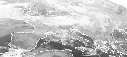 Auf dem Satellitenbild von Sonntag früh erstreckt sich ein breites Wolkenband mit Regen von Polen über Süddeutschland bis in die Bretagne. Es gehört zu Tief 'Anke', dass sich zur Zeit über Polen befindet und weiter in Richtung Schwarzes Meer zieht. Über der Nordsee sind kleine Schauerwolken zu erkennen, die sich in der kalten Luft auf der Rückseite des Tiefs bilden. (Bildquelle: NERC Satellite Receiving Station, Dundee University, Scotland, http://www.sat.dundee.ac.uk/)