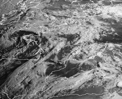 Auf den ersten Blick ist diese Bild vom Donnerstagmorgen recht unübersichtlich. Wenn man genau hinsieht, erkennt man jedoch einen kleine Wirbel von der Bretagne. Hier liegt das Zentrum von Tief 'Döhrte'. Von Südwesten her kann es eine feuchte und wolkenreiche Luftmasse nach Deutschland lenken. Feuchtigkeit und Wärme des Mittelmeers lassen in ihr immer wieder Wolken entstehen, aus denen sich teilweise kräftigen Schauer entwickeln können.