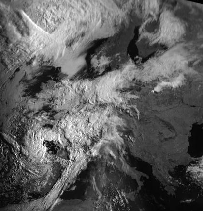 Hochdruckeinfluss sorgt über Südosteuropa für wolkenarmes Wetter. Ganz anders von Portugal bis nach Norddeutschland und Dänemark: Hier sorgt Tief 'Doris' mit Zentrum über der Biskaya für viele dichte Wolken.