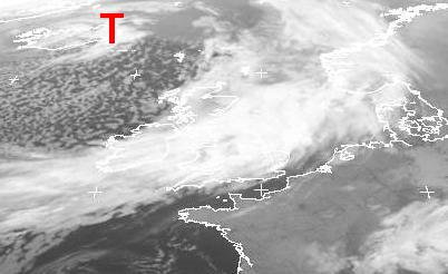 Auf dem Satellitenbild von Dienstag früh ist über Island das Tief 'Olinde' gut zu erkennen. Seine Fronten ziehen in der Nacht und Morgen über Deutschland hinweg und sorgen zum Teil für länger anhaltenden Regen, später auch Schauer. Auf der Rückseite des Ausläufers bilden sich in kühleren Luftmassen Schauer. Diese sind zwischen Island und Irland gut zu erkennen.