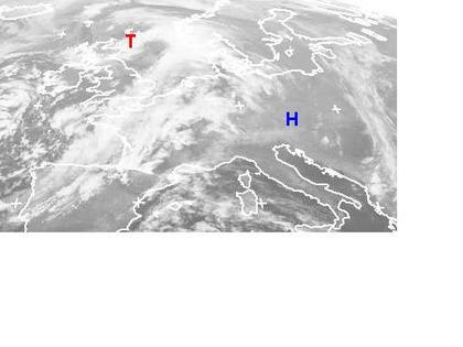 Ein dichtes Wolkenband erstreckt sich von der Nordsee und Südnorwegen über Frankreich bis in den Nordwesten der Iberischen Halbinsel. Darin befinden sich die Fronten des Tiefs 'Quintessa' mit seinem Zentrum bei Schottland. Seine Fronten verlagern sich langsam nach Osten und werden am Abend und in der Nacht vor allen in der Westhälfte Deutschlands Regen bringen. (Bildquelle: NERC Satellite Receiving Station, Dundee University, Scotland, http://www.sat.dundee.ac.uk/)