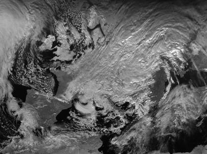 Während im östlichen Teil Europas Tief 'Scarlett I + II' für dichte Wolken und Schnee oder Schneeregen sorgt, ist es in Westeuropa unter Einfluss von Hoch 'Yannick' freundlich.