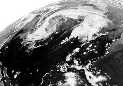 Ein Tiefdruckwirbel liegt mitten über dem nordamerikanischen Kontinent. Vor allem zwischen den großen Seen und der Hudsonbai liegen viele Wolken mit ergiebigem Regen und auch Gewittern. Einige Gewitterwolken findet man in den USA auch weiter nach Süden und nach Florida hin. Der Südwesten ist dagegen unter Hochdruckeinfluss wolkenfrei.