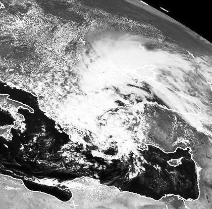 Ein Tief über dem Schwarzen Meer sorgt derzeit für viele Wolken über Südosteuropa. In Griechenland kommt es in eher kühler Luft zu vielen Schauern. Recht ergiebiger Regen fällt aber auch im Süden der Ukraine. Weiter nach Nordwesten erkennt man auf dem Satellitenbild nur einige lockere Quellwolken.