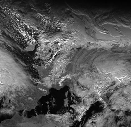 Tiefdruckgebiete sorgen auf dem Satellitenbild vom Sonntagmittag für viele Wolken über Südosteuropa, im Nordwesten der Iberischen Halbinsel und über Nordeuropa sowie im Bereich der Ausläufer von Tief 'Zephyrinus', die von Westen nach Deutschland ziehen. Über weiten Teilen Mitteleuropas, am westlichen Mittelmeer und in Westfrankreich herrscht leichter Hochdruckeinfluss, hier ist auch die Bewölkung geringer.