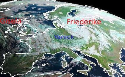 Das Satelittenbild von heute Früh zeigt zwei Tiefdruckgebiete über den Britischen Inseln und Südskandinavien. Besonders ergiebig fallen die Niederschläge in Südschweden aus, aber auch in Irland, Schottland und England muss mit einigen Schauern und teils großen Niederschlagsmengen gerechnet werden. Freundlicher ist es generell rund ums Mittelmeer, wobei es in Südfrankreich und Norditalien ebenfalls zu einzelnen Schauern kommen kann.