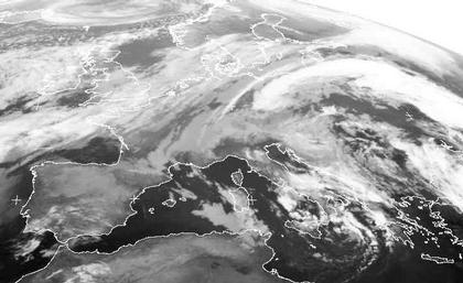 Das breite Wolkenband, dass sich von Südschweden über die Nordsee und den Englischen Kanal bis hinaus auf den Atlantik erstreckt, gehört zu einem Tiefdrucksystem, das in den Nächsten Tagen unser Wetter bestimmen wird. Während sich über Südengland bereits ein neues kleines Tief ausbildet, gehört der Teil von der Nordsee bis nach Südschweden zu Tief 'Stephan' westlich von Norwegen. Dieser Ausläufer sorgt heute im Norddeutschland für etwas Regen. Das weiße Wolkenband, dass sich von Süddeutschland über Tschechien und Rumänien bis zum Schwarzen Meer erstreckt, und in Bayern heute für Regen sorgt, gehört zu dem Tief 'Quirin' mit seinem Kern über dem Mittelmeer.