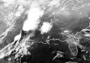 Auf dem Satellitenbild sind sehr schön hochreichende Gewitterzellen im mittleren Westen der USA zu erkennen. Es ist sehr wahrscheinlich, dass sich auch zu dieser Jahreszeit schon Tornados innerhalb dieser Gewitterzellen bilden.