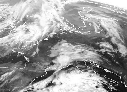 Über Norddeutschland ist der Himmel noch weitgehend wolkenfrei. Weiter im Südenb liegt aber bereits starke Bewölkung, von der ausgehend unter dem Einfluss von Tief 'Valerie' bei Belgien, das im Satellitenbild sonst nicht zu erkennen ist, sich Schauer und Gewitter entwickeln, die sich auch weiter nach Norden und Osten ausdehnen. Aber auch um Deutschland herum bringen Tiefs Wolken. Tief 'Uschi' liegt noch mit seiner Bewölkung über der Ostsee. Ein Nordmeertief bringt Wolken nach Großbritannien und Norwegen und ein Tief über dem westlichen Mittelmeer bringt dort teils kräftige Schauer oder auch Gewitter.