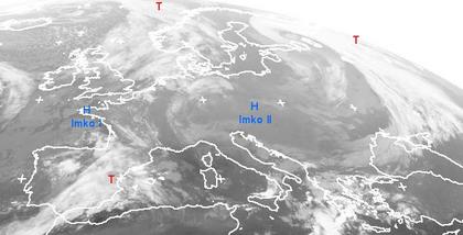 Auf dem Satelittenfoto von heute Morgen zeigen sich einerseits dichte Wolken über der Südosthälfte der Iberischen Halbinsel und andererseits ebenso dichte Wolken über Norwegen. In diesem Bereich kann es heute teils langanhaltenden Regen geben. Im übrigen Europa ist es teils wechselnd bewölkt mit nur einzelnen Schauern oder auch sehr freundlich. In einem Streifen von Südengland, über Frankreich, Deutschland bis Polen sorgt Hoch 'Imko' für meist sonniges Wetter bei nur wenigen Wolken.