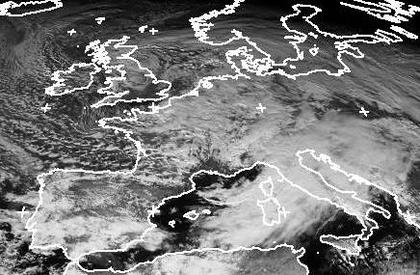 Das Tief 'Rosel' mit Zentrum im Osten von Großbritannien sorgt in Europa verbreitet für Wolken. Am dichtesten sind die Wolken über Italien, wo die kalte Luft von Norden auf die feucht-warme Mittelmeerluft trifft. Hier fällt örtlich auch der stärkste Regen. Vor allem auf der Westseite des Kontinents strömt kalte Luft nach Süden, über dem Atlantik führt sie aber meist zu lockerer Schauerbewölkung.