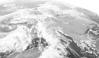Ein Tiefdrucksystem über den Britischen Inseln sorgt für viele Wolken und Regen in Westeuropa. Seine Ausläufer reichen bis ins Mittelmeer und bringen hier teils kräftige Schauer und Gewitter. Über Osteuropa bringt ein Hoch ruhiges aber trübes Wetter. (Bildquelle: NERC Satellite Receiving Station, Dundee University, Scotland, http://www.sat.dundee.ac.uk/)