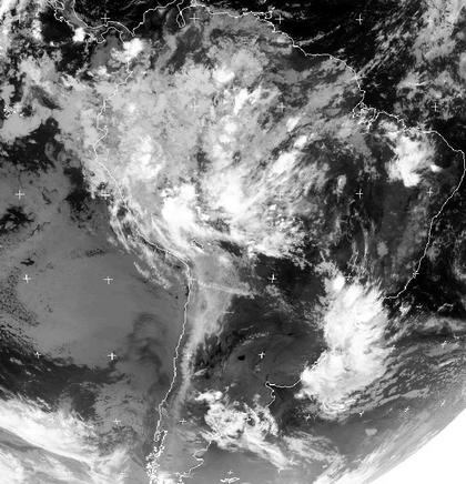 Auf dem heutigen Satellitenfoto ist ein großer Teil Südamerikas vom Süden Kolumbiens, die Pazifikküste hinunter bis nach Nordchile und nach Osten hin bis in den Westen Brasiliens von meist dichten Wolken bedeckt, die vielerorts für teils kräftige Schauer und auch Gewitter sorgen. Deutlich freundlicher und meist sonnig zeigt sich dagegen der Süden Südamerikas von Feuerland nach Südchile und von dort weiter über den Süden, Osten und Norden Brasiliens bis zur Atlantikküste.