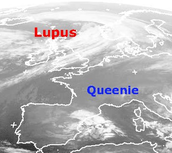 Das Tief 'Lupus' liegt am Donnerstag Morgen mit seinen dichten Wolken von Großbritannien nach West-Skandinavien und bis nach Island. In Mitteleuropa sorgt dagegen Hoch 'Queenie' für verbreitet wolkenarmes Wetter. Über dem Osten Spaniens und den Balearen bringen Wolken Schauer und Gewitter, sie gehören zu den Resten des alten Tiefs 'Karl'. 'Lupus' wird sich in der Nacht und morgen auf dem Süd nach Süden machen und auf dem Festland etwas Regen bringen. (Bildquelle: NERC Satellite Receiving Station, Dundee University, Scotland, http://www.sat.dundee.ac.uk/)