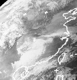 Unter Hochdruckeinfluss kommt es in China kaum zu Schauern. Teils ist es nur gering bewölkt. In weiten Gebieten des Südens halten sich aber auch recht dichte und flache Wolken. (Bildquelle: NERC Satellite Receiving Station, Dundee University, Scotland, http://www.sat.dundee.ac.uk/)