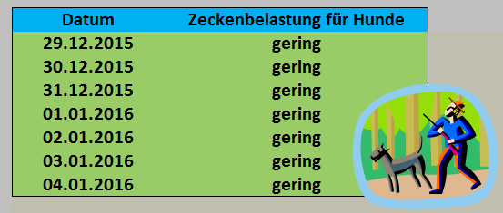 Die letzten Tage des Jahres 2015 klingen durchweg mit niedrigen Hundezecken-Belastungen aus.