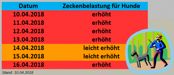 Nun sind die entspannten Stunden für Vierbeiner und deren Besitzer endgültig vorbei: Zeitweilige Schauer und milde Temperaturen sorgen in dieser Woche nämlich weiterhin für leicht erhöhte bis erhöhte Zeckenrisiken im Land.