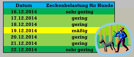 Es ist also nicht ausgeschlossen, dass von Mittwoch bis Freitag einzelne für den Hund gefährliche Zecken aktiv sind.