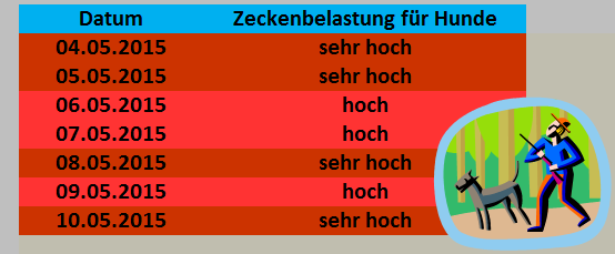 Die (hoch-)sommerlichen Temperaturen in Verbindung mit regionalen Schauern und Gewittern sorgen weiterhin für hohe Belastungen bei den Hundezecken.