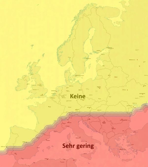 Die Karte zeigt die europaweite Hundezeckenbelastung bis Anfang Januar 2017: