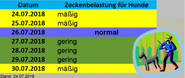 Unsere aktuelle Hundezeckenprognose bis zum 30.07.2018