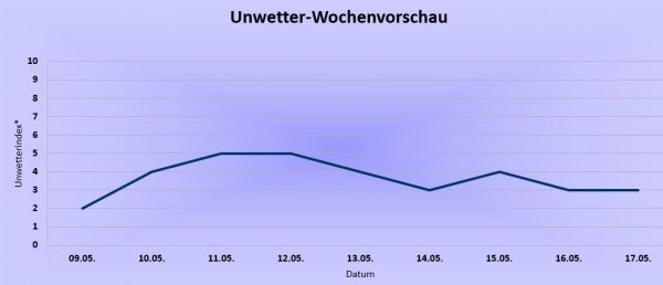 In der nächsten Woche steigt die Gefahr durch mögliche Gewitter doch spürbar an. Es begleiten uns jedoch auch weiterhin oft freundliche Wetterabschnitte, dabei besteht am Montag noch ein meist geringes Schauer- und Gewitterrisiko. Am Dienstag, vor allem jedoch am Mittwoch und Donnerstag sind jedoch vervorzugt nachmittags teils kräftige Schauer und Gewitter möglich. Ab Freitag und bis zum Ende der Woche entspannt sich die Wetterlage dann voraussichtlich ein Stück weit und bei leicht sinkenden Temperaturen verringert sich auch das Unwetterpotezial.