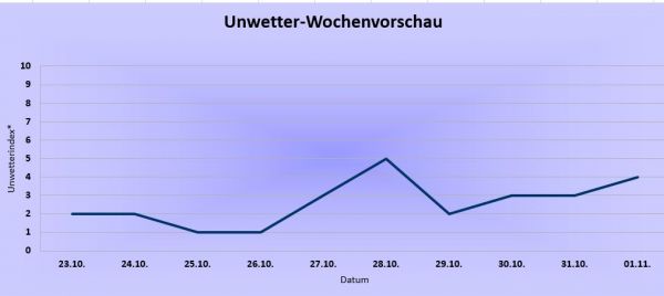 Das Unwetterrisiko für die laufende Herbstwoche ist besonders bis einschließlich Donnerstag nur gering, d.h. bis dahin erwartet uns zwar streckenweise wechselhaftes, jedoch weitgehend ruhiges Herbstwetter. Ab Donnerstag frischt der Wind von Norden her jedoch spürbar auf und am Freitag erwartet uns im gesamten Bundesgebiet voraussichtlich windiges, teils stürmisches und oft nasses Herbstwetter. Zumindest der Wind lässt dann am Wochenende wieder nach.