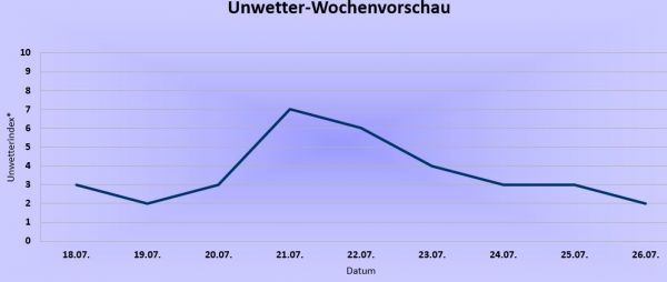 In der laufenden Wetterwoche zeichnet sich für die Unwettergefahr ein schwankendes Bild ab: