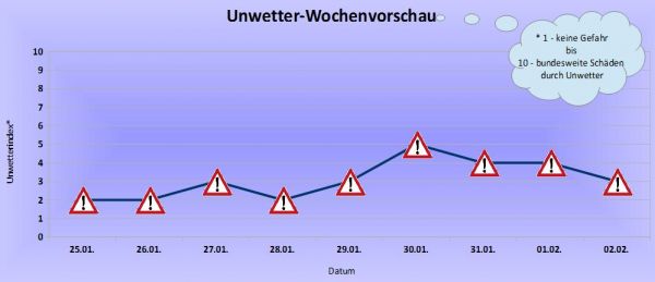 In der kommenden Wetterwoche kann von echtem Winterwetter keine Rede mehr sein, denn die milden Luftmassen haben sich dann bereits auch in den östlichsten und südlichsten Landesteilen durchgesetzt. Das Unwetterrisiko bleibt aber auch sonst eher gering, teils starker Wind ist zunächst nur für das Nordseeumfeld und vorübergehend auch an der Ostsee prognostiziert. Am Wochenende könnte dann aber im ganzen Land ein teils starker, an der Nordsee auch teils stürmischer Wind herrschen. Die Nächte bleiben überwiegend frostfrei, vor allem im Süden, teils auch im Osten ist in einzelnen Nächten leichter Frost mit möglicher überfrierender Nässe oder Rauhreif möglich. Ein erneuter Wintereinbruch ist jedoch derzeit nicht in Sichtweite!