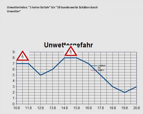 Die mögliche Gefahr durch Unwetter ist in der laufenden Woche beträchtlich: