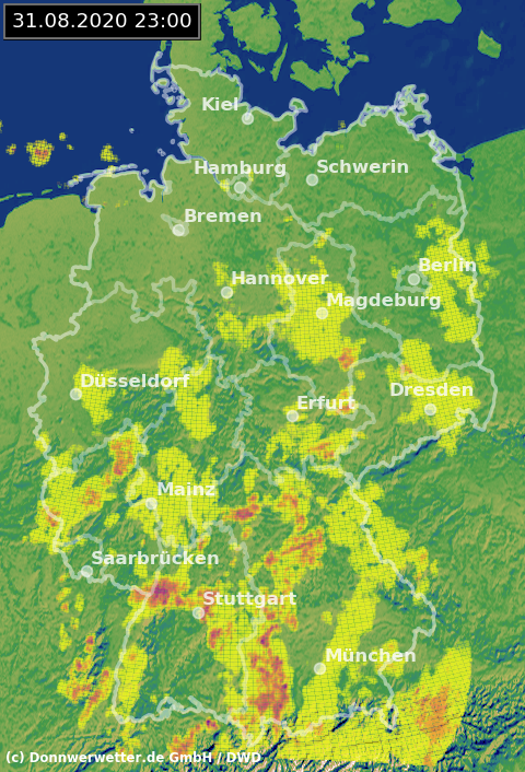 Radarbild von Montag, 31.08.2020 um 23.00 Uhr