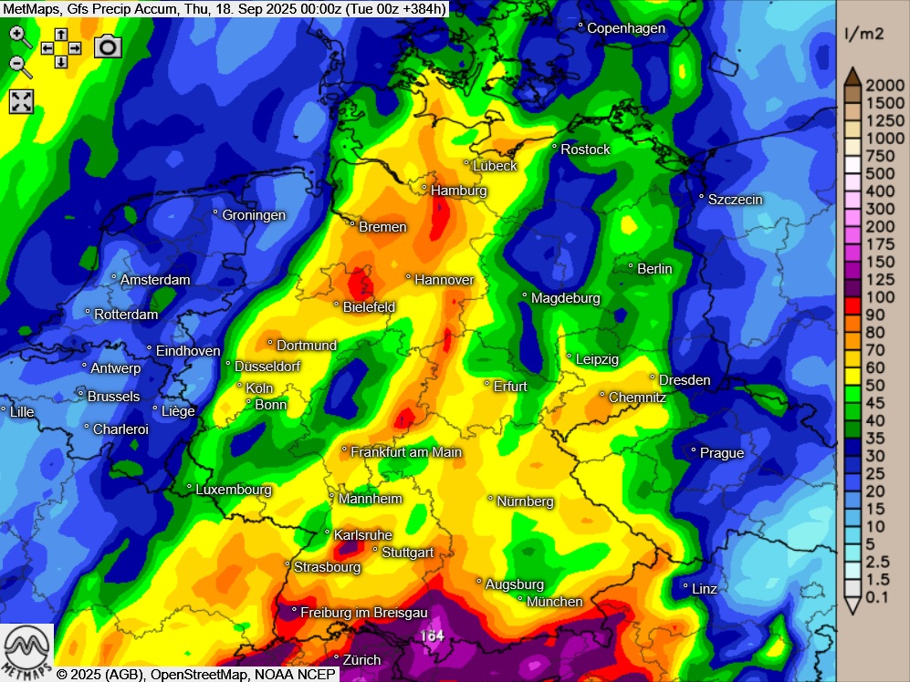 Ob sich der Altweibersommer auch noch darüber hinaus behaupten kann, ist aktuell noch unsicher. Ebenso, mit welchen Niederschlagsmengen wir es wo genau im weiteren Monatsverlauf zu tun bekommen werden.