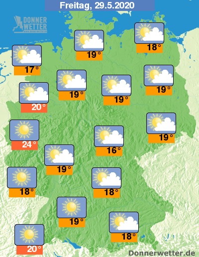 Am Pfingstmontag legen die Temperaturen nach jetzigem Stand bundesweit wieder zu. Während es vor allem im Südosten und Osten mit einzelnen Schauern leicht wechselhaft bleibt, bestimmt in den übrigen Landesteilen Sonne und leichte Bewölkung das Himmelsbild und es bleibt trocken.