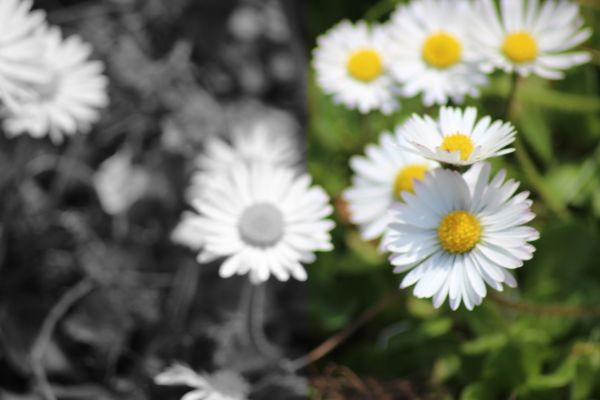 In der ersten Wachstumsperiode sind beide Populationen gleich gewichtet. Jedoch ist schon nach der ersten Blütezeit die Population der dunklen Gänseblümchen in der Überzahl. Somit haben die dunklen Blüten in der nächsten Wachstumsperiode einen Vorteil. Dies führt sich immer weiter fort, bis die Temperaturen höher werden.
